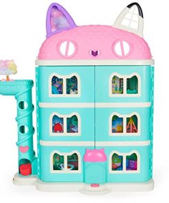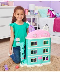 Entra nella casa delle bambole di Gabby e rivivi le avventure proprio come nella serie televisiva. La casa è alta 61 cm e ha diverse funzioni entusiasmanti tutte da scoprire, tra cui la torre per la consegna dei pacchi, un gatto-ascensore funzionante, luci e suoni. Nella casa troverai il personaggio di Gabby alto 8,9 cm, il personaggio di Pandy Panda, i mobili per le stanze, accessori e due pacchi consegna. Proprio come nella serie televisiva, lancia un pacco-consegna dalla torretta e premi il pulsante in basso per recuperarla: inoltre, se apri il pacco troverai all’interno una piccola sorpresa. Per aprire la casa, premi il pulsante posto sulla parte anteriore: la casa si aprirà e si attiveranno una serie di luci e suoni. Una volta finito di giocare potrai comodamente richiudere la casa con o senza i mobili al suo interno. Il playset funziona a batterie 3 AAA (non incluse)