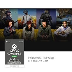 Ottieni accesso illimitato a più di 100 giochi di grande qualità per Xbox One e Windows 10, e in più Xbox Live Gold. Con tanti nuovi titoli aggiunti ogni mese, Xbox Game Pass ti apre le porte a continue scoperte.Usa il tuo abbonamento attivo al piano Xbox Game Pass Ultimate per giocare su Xbox One e PC Windows 10. Include il piano Xbox Game Pass per Console, il piano Xbox Game Pass per PC e Xbox Live Gold. Per ciascun account è possibile riscattare al massimo 36 mesi del piano Ultimate per volta. I titoli e il numero dei giochi variano nel tempo e in base al paese. Se un gioco viene rimosso o l’abbonamento scade, è necessario riattivarlo o acquistare il gioco per continuare a utilizzare gli add-on o gli oggetti acquistati per quel titolo. Vengono applicate le restrizioni sull’età e le tariffe del provider di servizi Internet. Le offerte di sconto sono soggette a condizioni e restrizioni. Il servizio, le funzionalità e i requisiti possono cambiare o essere ritirati. Se hai già un abbonamento a Xbox Game Pass o Xbox Live Gold, gli eventuali giorni rimanenti saranno trasferiti al piano Ultimate in base a un rapporto di conversione. Anche il futuro riscatto di codici è soggetto al rapporto di conversione. Le conversioni al piano Ultimate sono definitive. Scopri come funziona su (xbox.com/gamepass.)
