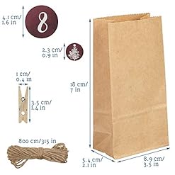 ? FACILE DA CREARE: si compone di 24 sacchettini in atto Kraft (18x9x5,5cm, vuotaggine), 24 mollette in legno e un cordoncino in juta con 8 m per appendere i bellissimi adesivi insieme motivi natalizi