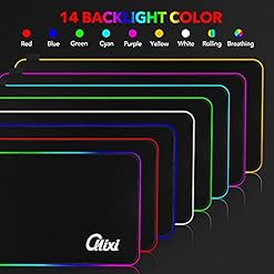 ?OLLIXI?L’interfaccia di alimentazione del tappetino per mouse rgb è dotata di un cavo USB da 1,5 M, Collega e Usa, non è necessario alcun driver. Basta toccare il pulsante di accensione per cambiare gli effetti di luce e le modalità. Facile da usare. Questo tappetino per mouse RGB ricorderà la tua ultima selezione di modalità RGB con la sua funzione di memoria intelligente