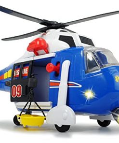 Elicottero cm.41 di Dickie con movimento, cabina di pilotaggio apribile, argano funzionante che tira su la barella, l’elicottero è provvisto anche di luce.