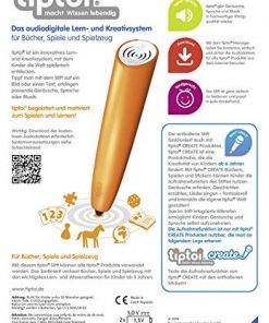 tiptoi è il popolare sistema di apprendimento audiodigitale e creativo di Ravensburger. La penna tiptoi rende le conoscenze più vivaci. Funziona con tutti i prodotti che portano il logo Tiptoi: libri, giochi e giocattoli. La funzione di registrazione della penna può utilizzare i bambini in libri, giochi e adesivi della nuova serie tiptoi Create: inventare rumori, raccontare storie e cantare canzoni – Creare il proprio mondo creativo tiptoi. La funzione di registrazione è utilizzabile esclusivamente con i prodotti tiptoi Create. La confezione contiene alcuni adesivi CREATE per testare la funzione di registrazione.