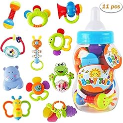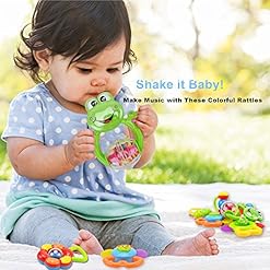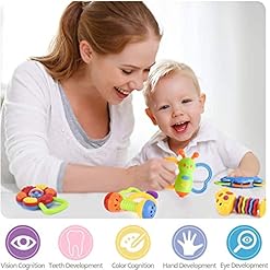 ?【Giocattoli educativi precoci per bambini】 Diverse forme, colori e suoni tremanti stimolano l’ascolto, la curiosità e l’identificazione della forma per sviluppare la capacità di coordinazione dei bambini. Questi giocattoli appena nati sono di dimensioni adatte per la mano del bambino e leggeri sono perfetti per masticare, afferrare e girare.