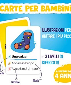 GIOCHI BAMBINI 4 ANNI: Generazione Mimo è un gioco adatto ai più piccoli grazie alle carte bambini con figure che permettono a chi non sa leggere di giocare. È anche un GIOCO EDUCATIVO perché permette ai più piccini di consolidare il proprio vocabolario.