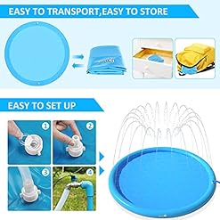 【Facile installazione e conservazione】 Basta inserire questo materassino gonfiabile in un tubo da giardino standard o in PVC e riempirlo con acqua. Dopo l’emozionante gioco di spruzzi, è possibile far saccheggiare l’acqua all’interno e asciugare. Il tappetino per schizzi può essere piegato fino alle dimensioni di un libro, facile da trasportare e riporre