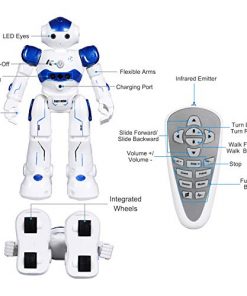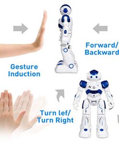 Batteria Ricaricabile: Alimentata dalla batteria ricaricabile USB integrata, il tempo di gioco è di circa 60 minuti e la carica completa è bisogno di 120 minuti. Nota: utilizzare un caricatore in uscita da 5 V con il cavo USB incluso per caricare il robot.