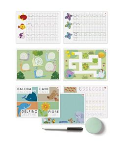 DESCRIZIONE: un gioco educativo semplice e divertente per imparare a scrivere le lettere e le prime parole grazie a lavagnette colorate riscrivibili con l’apposito pennarello