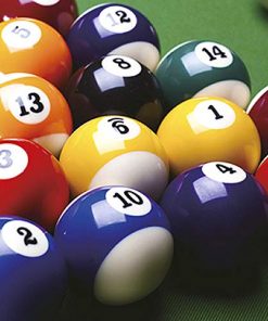Set composto da 19 pezzi: 16 palle in resina (15 colorate e 1 bianca), 1 gessetto, 2 stecche, 1 spazzola e 1 triangolo per organizzare le palle.