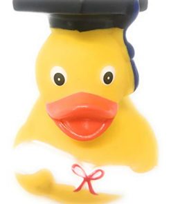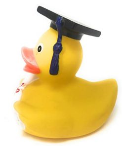 Paperella da bagno tocco da laureato e rotolo di pergamena.