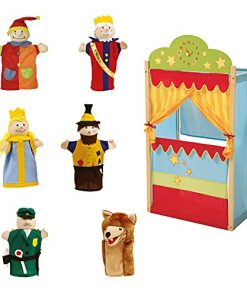 Set di 6 marionette: Burattini. 6 pezzi, in tessuto, peluche e feltro, con accessori tessili. Personaggi: Kasper, Principessa, Famiglia reale, Polizia, ladri e Lupo.