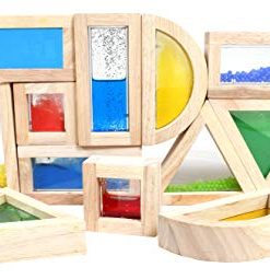16 grandi blocchi di legno di gomma contenenti perline acrilico trasparente colorato sabbia e tasche riempite acqua/glitter in 4 diverse forme (quadrato rettangolo triangolo e semicerchio). I blocchi sensoriali promuoveranno l’osservazione in senso più ampio, poiché tutte le forme seguono la stessa convenzione di colore e forma. Ad esempio, indipendentemente dal contenuto del blocco, i quadrati sono sempre rossi. La combinazione di legno liscio esterno e il centro sensoriale dai colori vivaci lo rende un componente affascinante con a moltitudine di possibilità educative per bambini di tutte le età.