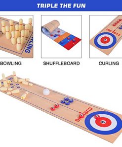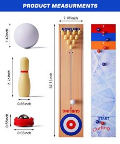 ♥♥ 【Set di giochi 3 in 1】 Questo set di gioco presenta spazi ben definiti per le partite di bowling e curling su un lato del tabellone, lo shuffleboard è disposto in modo spazioso sul retro e questo set rappresenta una divertente attività indoor per tutta la famiglia.